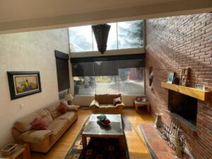 Sala de doble altura, cocina equipada, cuarto de TV y estudio